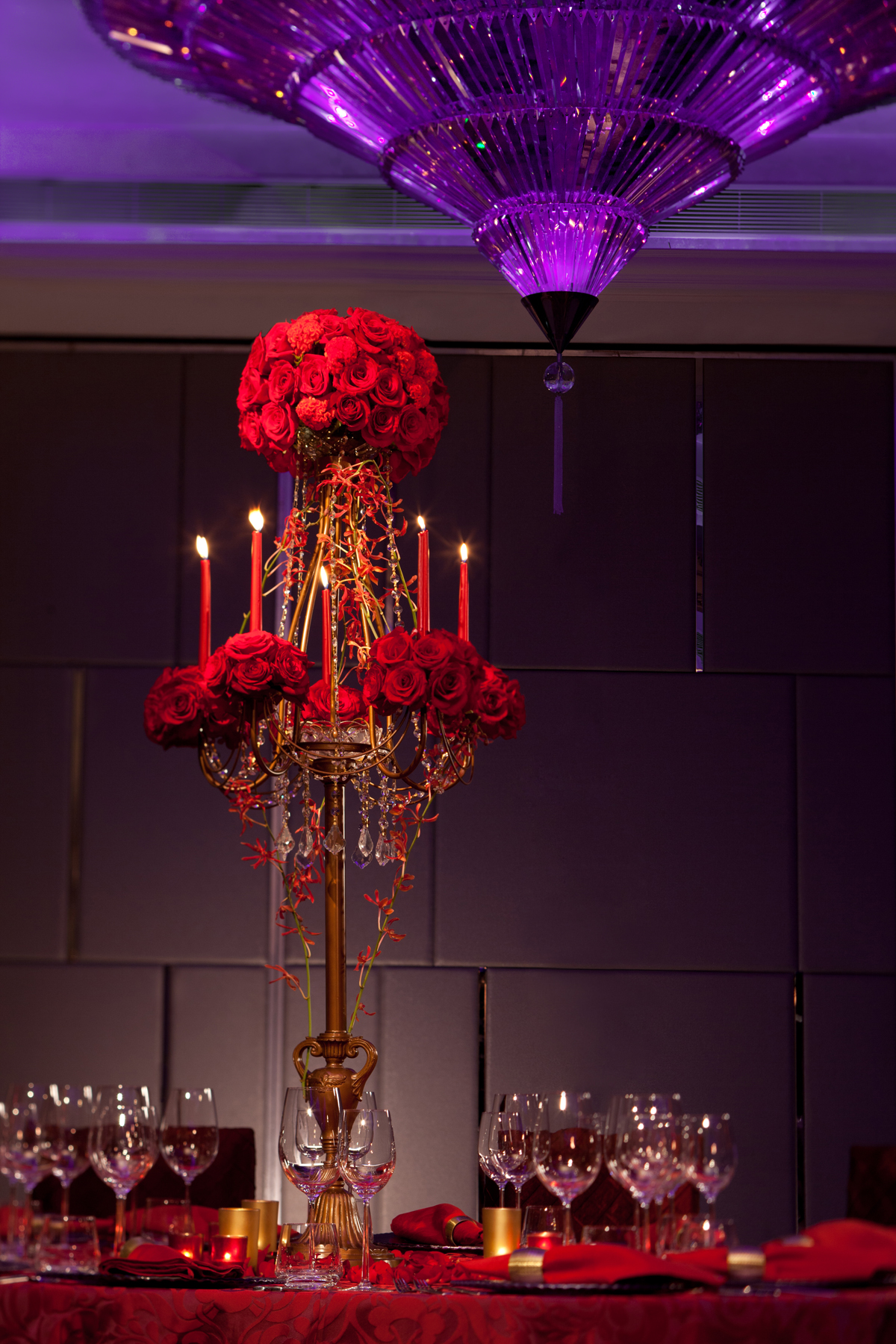 Red Roses in Golden Candelabra